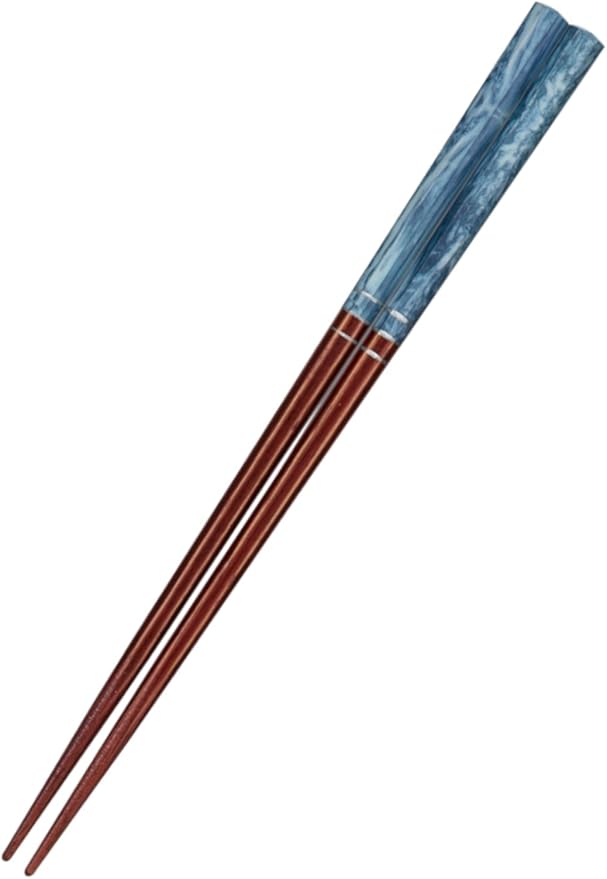 ナカノ 箸 塗箸 食洗機対応 天然木 22cm マーブル 大理石調 ブルー 滑り止め加工 握りやすい 六角箸 若狭塗箸 日本製