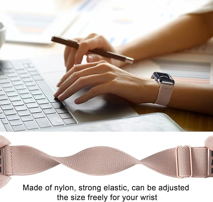 【無段階調整】伸縮性のある高品質ナイロン素材とステンレス金属ループを採用し、バンドを無段階でお手首に合わせて調整できます。(バンドの調整範囲:10.92cm-22.08cm)。調整操作は簡単です。