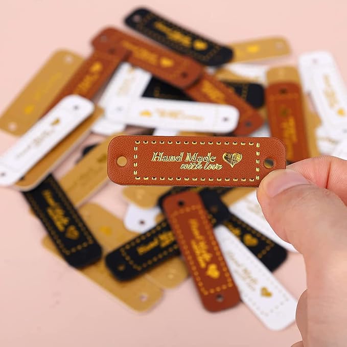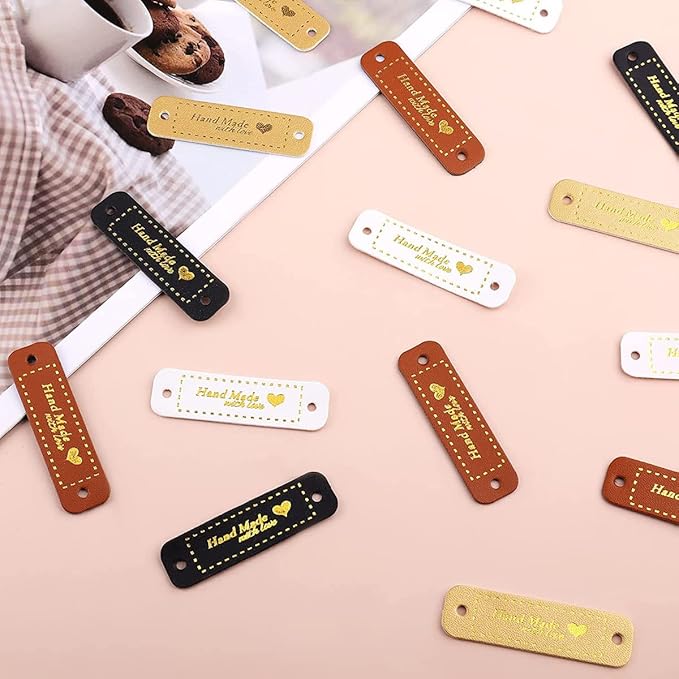 【よくできたPUレザータグ】-ラベルの各縫い目はPUフェイクレザーでできており、バリのない滑らかな表面が特徴で、ラベルのパターンと言葉がはっきりと印刷されています。工芸品の装飾に適しています。また、オブジェクトを識別して他のオブジェクトと区別するのにも役立ちます。