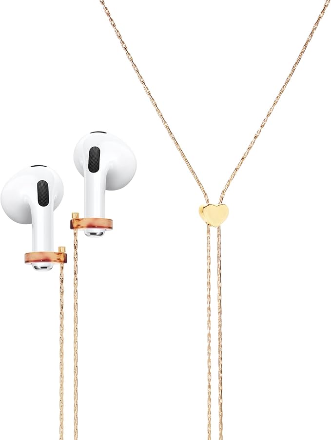 JOJOPANDA 紛失防止 Airpodチェーンホルダー ストラップコードストラップ スライド調節可能 Yネックレス Airpods Pro/3/2/1に対応 (ハート+ゴールドスリムチェーン)