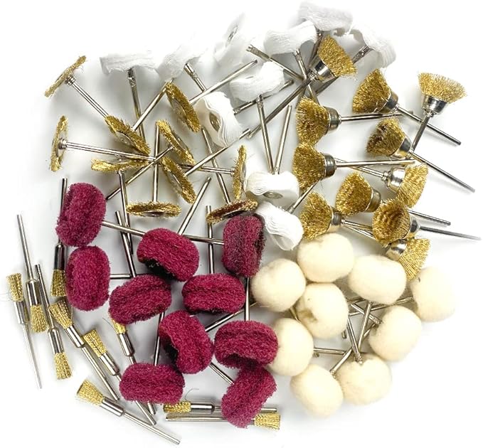 【高品質線材】:ミニルーター用先端パーツ 素材:真鍮線,純毛(フェルト),布,繊維 耐久性と実用 小さな、良好な研磨効果、高効率、低コスト 梱包:布バフ10本&フェルトバフ10本&繊維バフ10本&ホイール型ブラシ10本&ボウルカップブラシ10本&筆型ブラシ10本 コレットチャック径:直径約2.35mm ブラシ許容回転数: 20000rpm