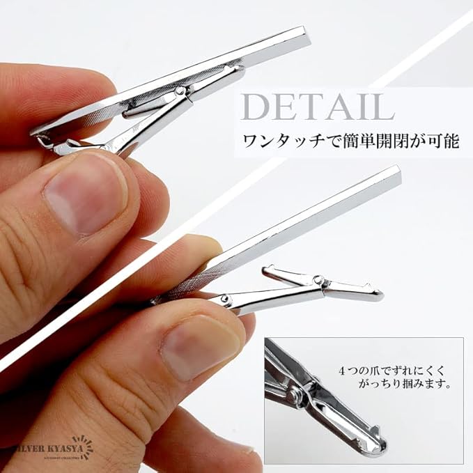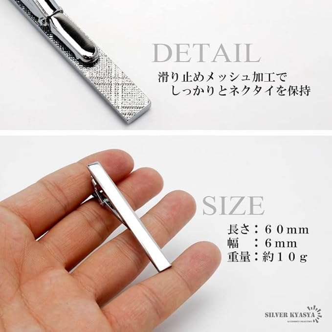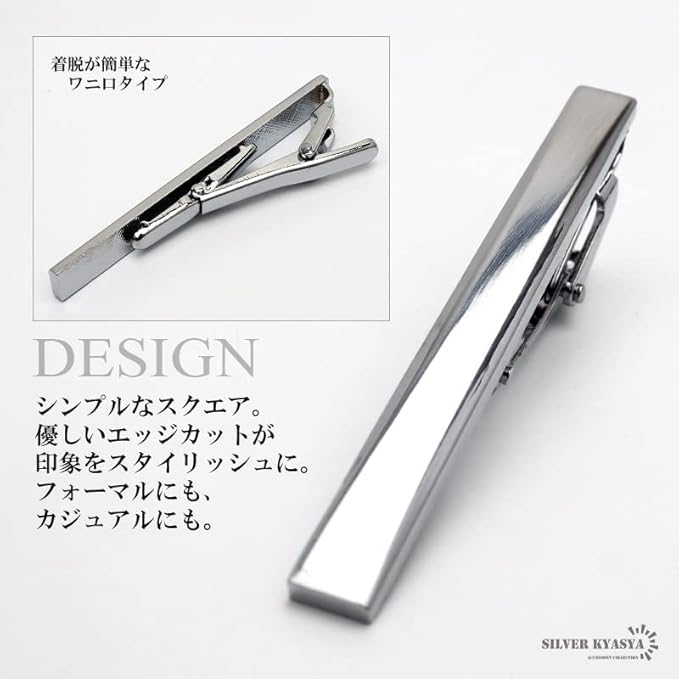 [silver KYASYA]ネクタイピン シンプル タイピン タイクリップ シルバー プレーン ワニ口 メンズ レディース 父の日 おしゃれ ビジネス フォーマル プレゼント ギフト 冠婚葬祭 就職祝い