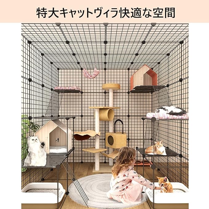 キャットケージ 猫 ケージ トイレ付 大型 キャットケージ ペット 2段 3段 うさぎケージ 屋内猫ベビーサークル ゲージ キャットタワー スタジアム ドア付き ワイド扉 収納 脱走防止 多頭飼い 頑丈 檻 ねこ ネコケージ 猫ハウス