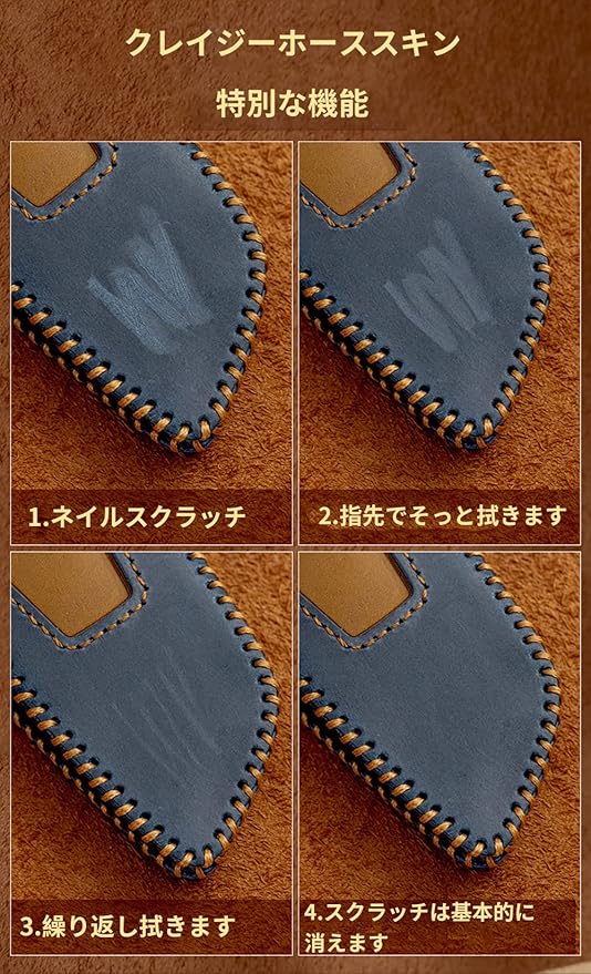【特徴】(1)ユニーク:本商品は天然素材を使用しています。動物の毛皮はそれぞれ異なるため、受け取ったキーケースはユニークです。(2)レザーケースに傷が残ると、指先で押し、前後に拭き、スクラッチ消えます。これはクレイジーホーススキンの特別な機能です。(3)製造時期により、多少色が変わる場合がございます。レザー種類により質感、肌触りが異なります。革の独特の色をお楽しみください。