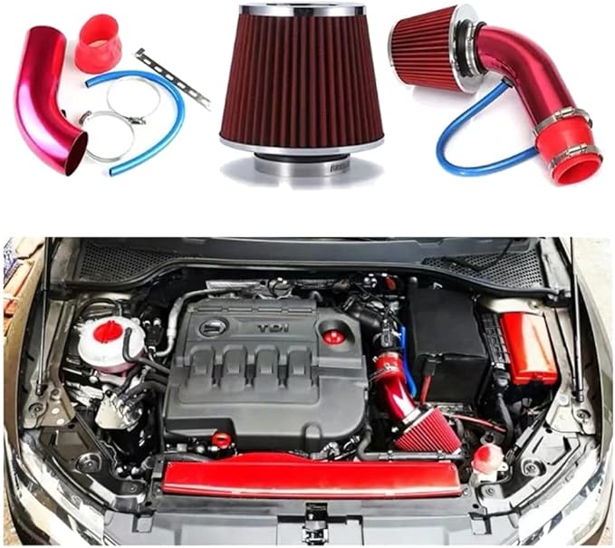 インテークパイプ エアクリーナー エアインテークパイプ アルミ製 キノコ 76mm 自動車用 吸気管 汎用品 社外品 (レッド)