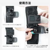 【操作便利】クリップにはロックノブが付いており、撮影に便利です。 バックパックのストラップにクリップで留め、ノブを反時計回りに回してカメラの撮影角度を調整し、時計回りにロックしてカメラを固定します。 横撮りと縦撮りを素早く切り替え!