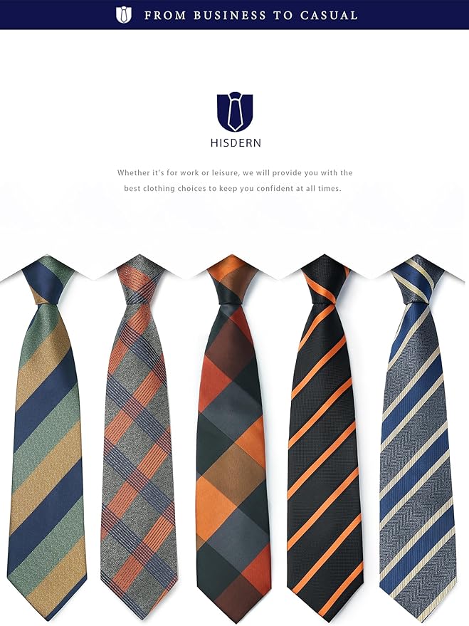 【 セット内容 】ネクタイ 5本 +ポケットチーフ 5本、HISDERNブランド専用ボックスが付きます。 ★ 商品サイズ:ネクタイ 幅8.5cm / 長さ150cm | ポケットチーフ: 31cm*31cm。