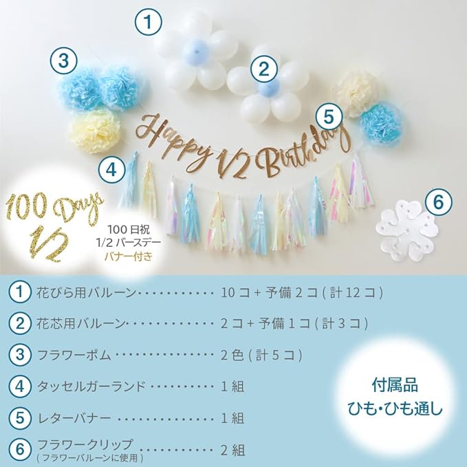 regalo 誕生日 ハーフバースデー 100日祝 バルーン 飾り付け セット ガーランドお祝い 記念撮影 装飾 プチフルールパーティーセット (ミルキーピンク)