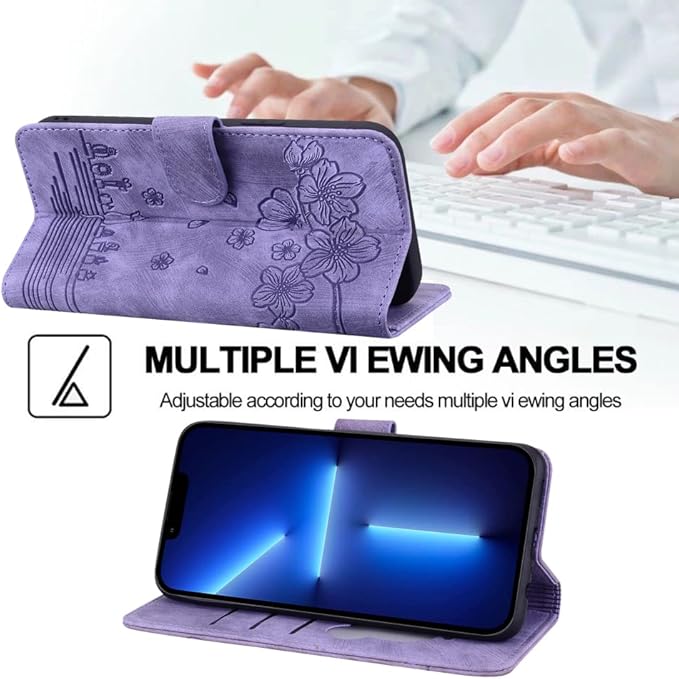 Torske Galaxy A53 5G ケース 手帳型 ギャラクシー A53 5Gケース さくら柄 Galaxy A53 5G SC-53C SCG15 用カバー 油絵デザイン ヴィンテージカラー 快適な質感 財布型 Galaxy A53 スマホケース カード収納あり 使う便利性 全面保護 ぎゃらくしー A53 ケース ギャラクシー A53 携帯ケース 6.5インチ 紫の