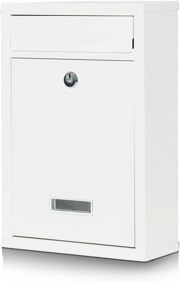 YooCabinet 壁掛けメールボックス キーロック付き 中容量ロックメールボックス 外側用 亜鉛メッキスチールカバー 防錆メタルポストボックス 12.5インチ 8.6インチ 3.4インチ ホワイト