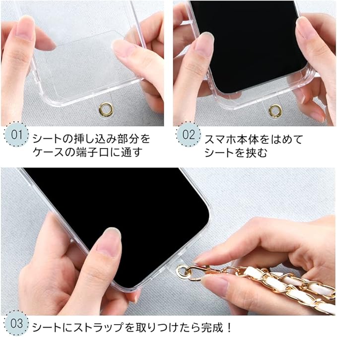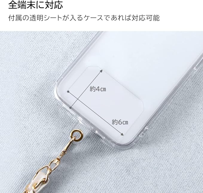 透明シートをケースとスマホの間に挟むだけ!全端末対応のスマホ用ショルダーストラップ。(※ケースは同梱されておりません)