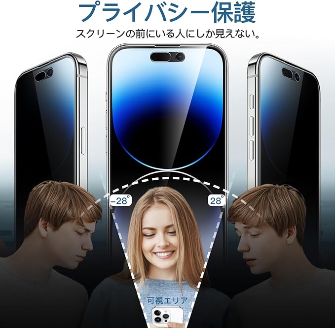 [プライバシー保護] iPhone 14 Pro 6.1インチ専用のデザインです。携帯画面が真正面にいる人のみ見えます。プライバシーを覗き見から効果的に保護します