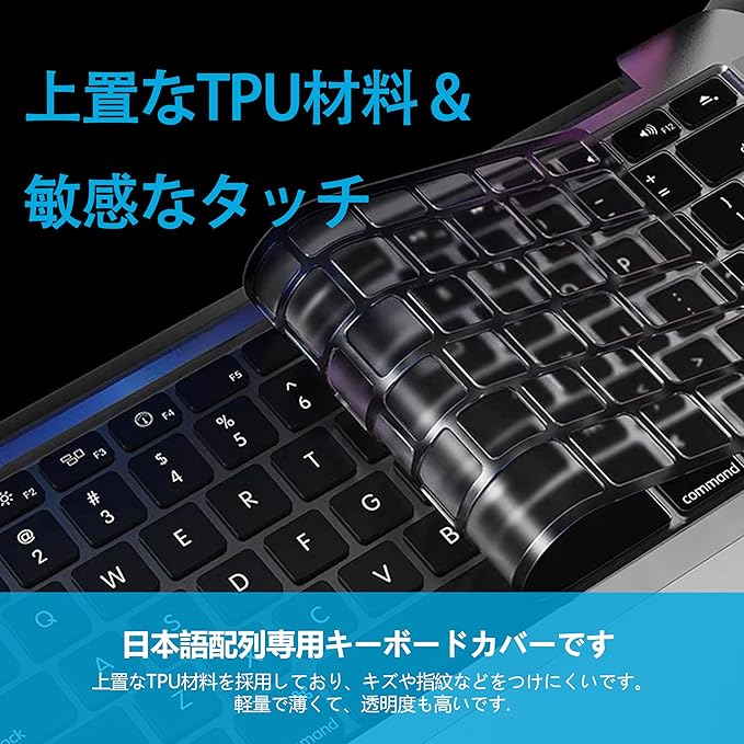 ★【日本語JIS配列キーボードカバー付き】 はTPU製で、厚さはわずか0.1mmです,超薄型。市販のシリコンよりも透明で薄いだけでなく、鍵盤へのフィット感やフィードバックが良く、さらに重要なことは、黄変しにくいということです。❗なお、このキーボードカバーは新型MacBook air 13.6インチ 2025 2024 2022 M3 M4 A3240 A3113 M2 A2681 JISにのみ適合し、指紋センサー(Touch ID)部分はカバーされていませんのでご注意ください。