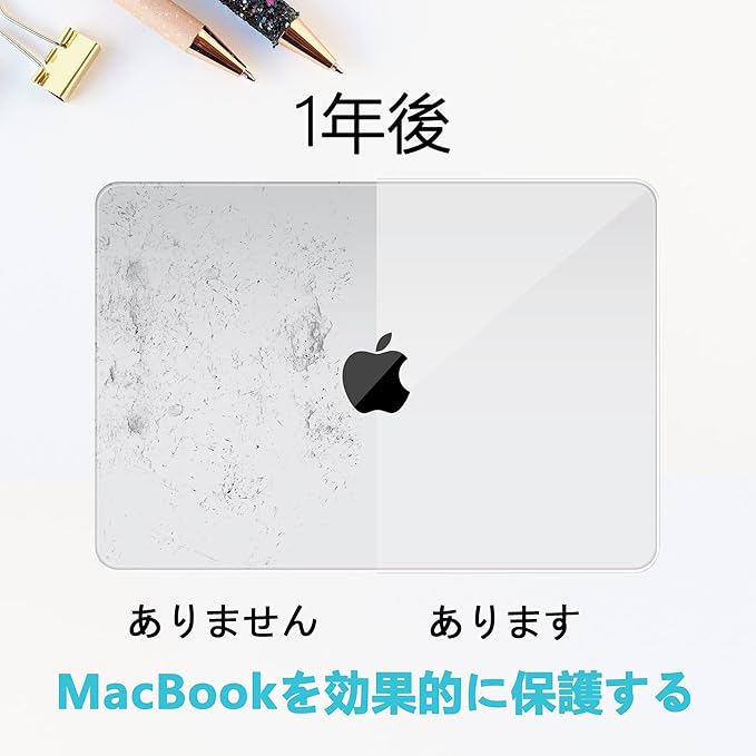 【上質素材の使用】 本製品は、物理的な傷に強い優れたポリカーボネート素材を使用しています。光の透過率が高いので、MacBookがより一層輝きます。この素材は柔軟性があるため、設置・撤去の際も壊れる心配がないです。もちろん、黄変防止効果も侮れません。