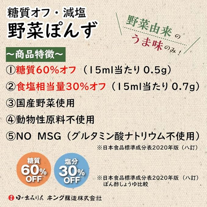 日の出 糖質オフ 減塩野菜ぽんず 360ml 2本