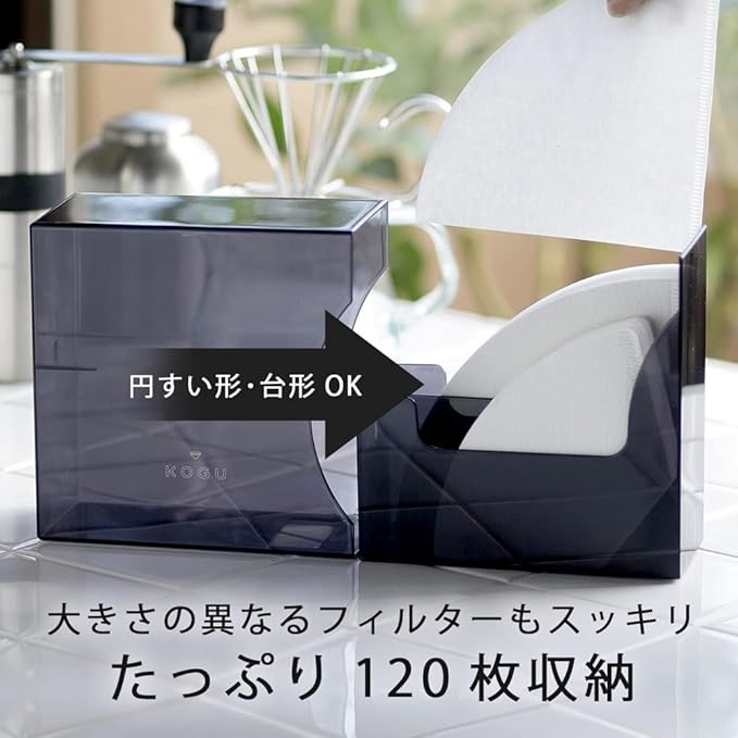 KOGU 珈琲考具 コーヒー フィルターケース ブラック 【日本製】 樹脂製 1~2杯用 2~4杯用 円錐 台形 120枚収納 仕切り付き 中身が見える 燕三条 44342 プレゼント 誕生日 記念日 ギフト 贈り物 父の日 下村企販