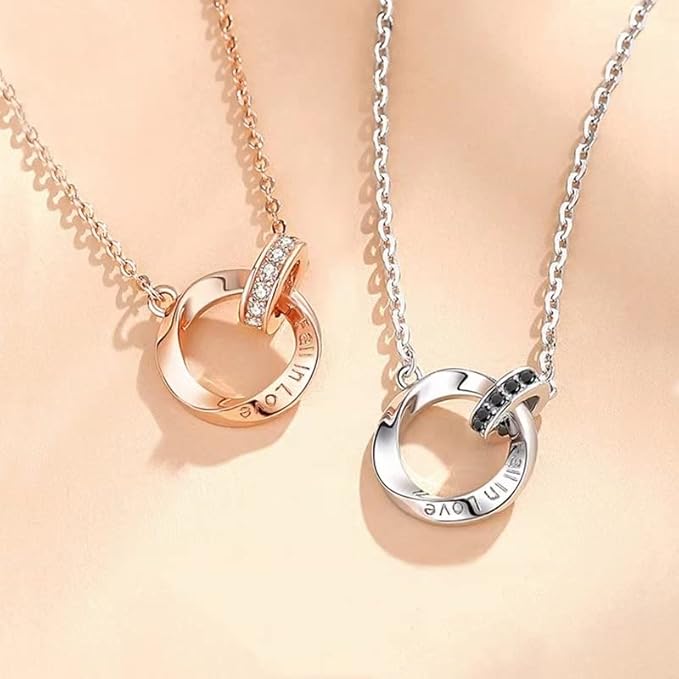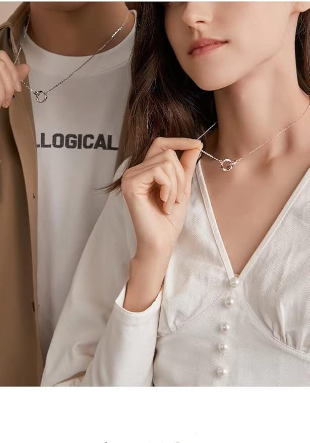 【優れたダブルリングデザイン】シンプルでありながら目を引くネックレス。 少し明るいジルコンが気質にポイントを加え、魅力的な光とロマンチックな雰囲気を作り出し、時間が美しく、あなたと絡み合っています。二人の愛が繋がっていることをイメージさせるデザインです!離れていても、いつもお互いの存在を近くに感じられるネックレスに仕上がっております!