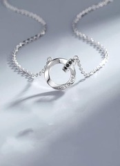 【商品の詳細】 : 【メンズ商品仕様】シルバー&ブラックジルコニア、ネックレス最大長55mm、チェーン太さ1.5mm、直径1.3cm、重さ4.6g 【商品仕様 レディース】 ローズゴールドとホワイトジルコニア ネックレス最大長さ45mm チェーン太さ1.0mm 直径1.2cm 重さ2.6g