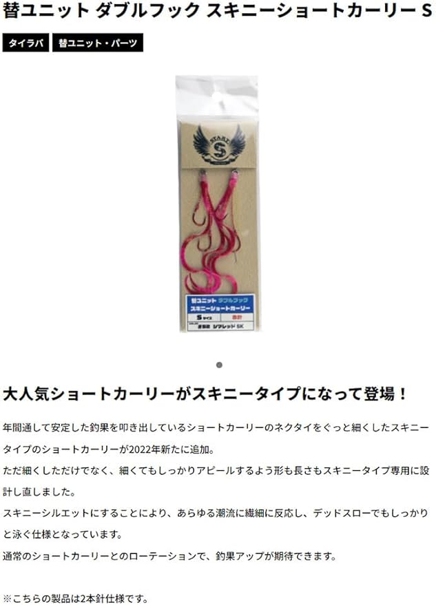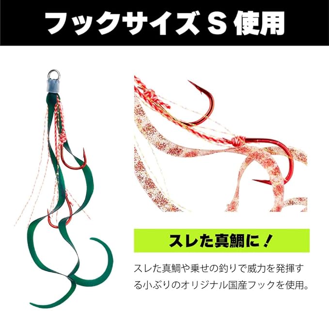搭載フック: Sサイズ 赤針 2本仕様(オリジナル国産フック)