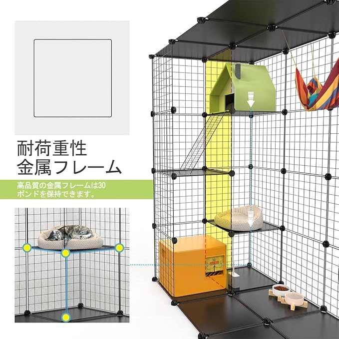 【1段、2段タイプとしても使用可能】猫 ゲージ 大きめ子猫一匹は一段、大きくなってきたら、家族が増えたら、新しい猫ちゃんを迎えることになったら、二段または三段四段に増築し、楽しくアレンジできます。