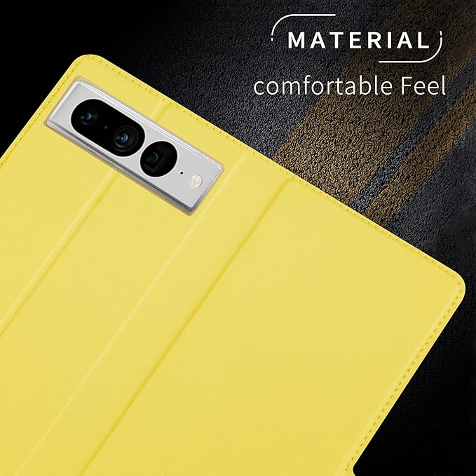 Google Pixel 7 Pro 用 手帳型ケース イエロー カバー マグネット 定期入れ ポケット シンプル スマホケース (Google Pixel 7 Pro, イエロー)