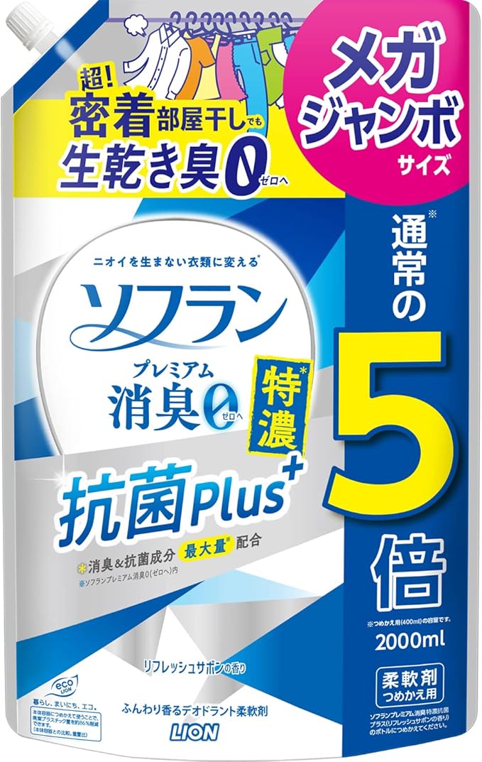 ソフラン プレミアム消臭 【大容量】 特濃抗菌プラス リフレッシュサボンの香り 液体 柔軟剤 詰め替え メガジャンボ 2000ml