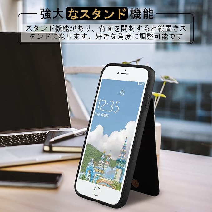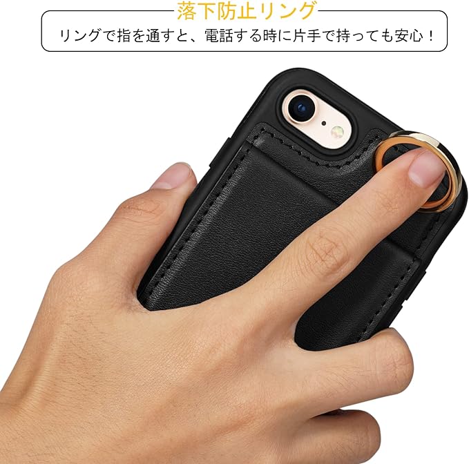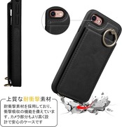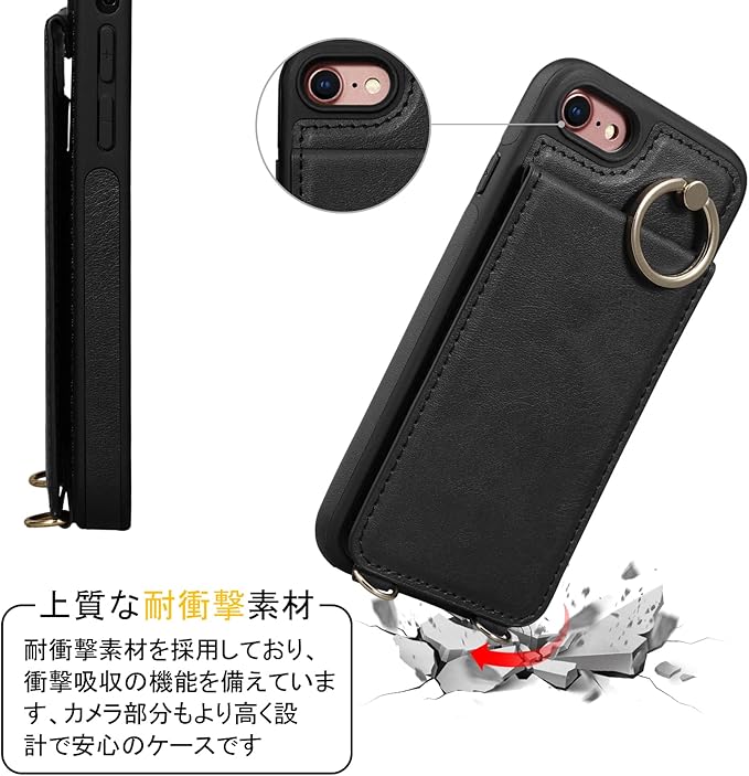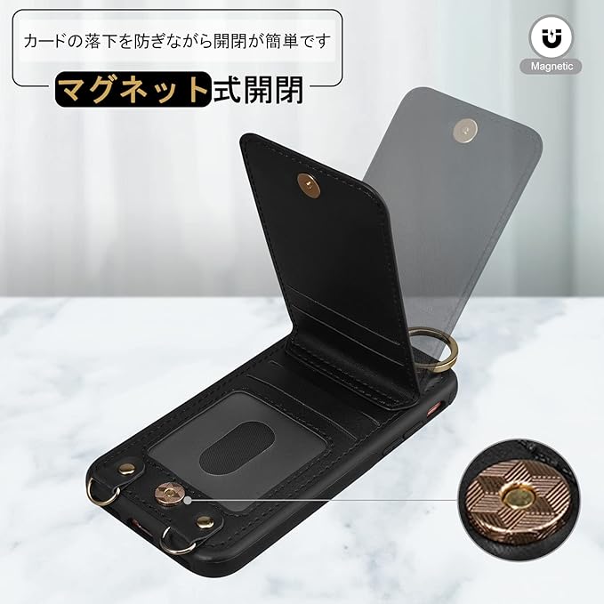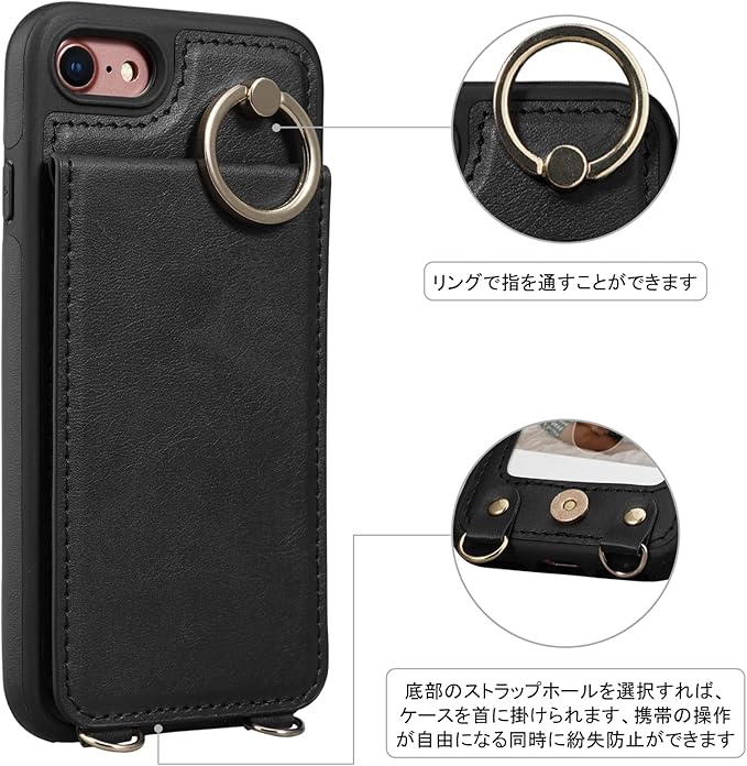 Shlybaay iPhone SE3 ケース 背面 手帳型 SE2 手帳型ケース iPhone8 カード se 第3世代 スマホケース SE2 第2世代 iPhone7 ショルダー ストラップ PUレザー 肩掛け カード収納 斜め掛け スタンド アイホン あいほん SE2 SE3 2022 可愛い 人気 おしゃれ ブラック