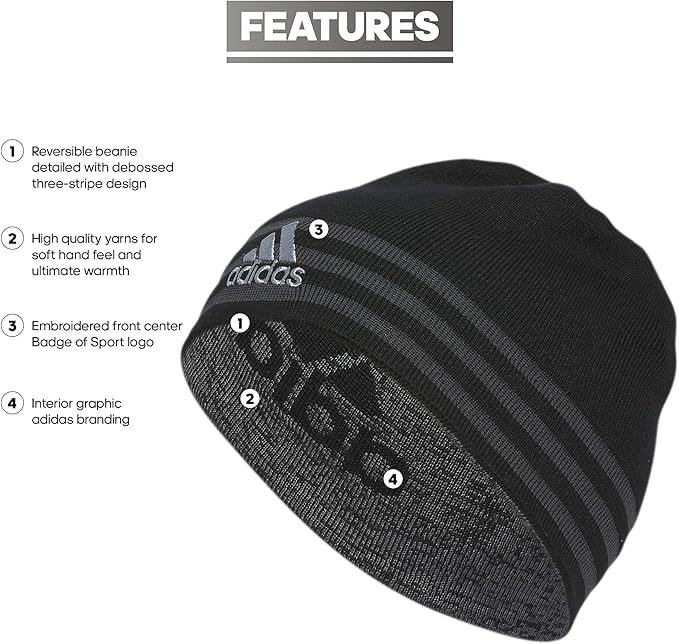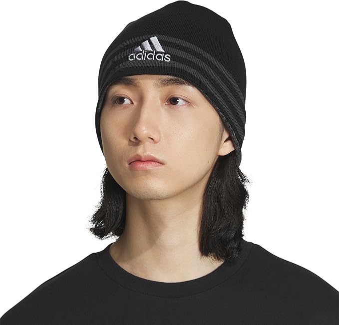 adidas メンズ リバーシブル スカリー ビーニー帽 標準フィット スカル キャップ / 帽子 冬, ブラック/オニックスグレー/グレー F23, One Size