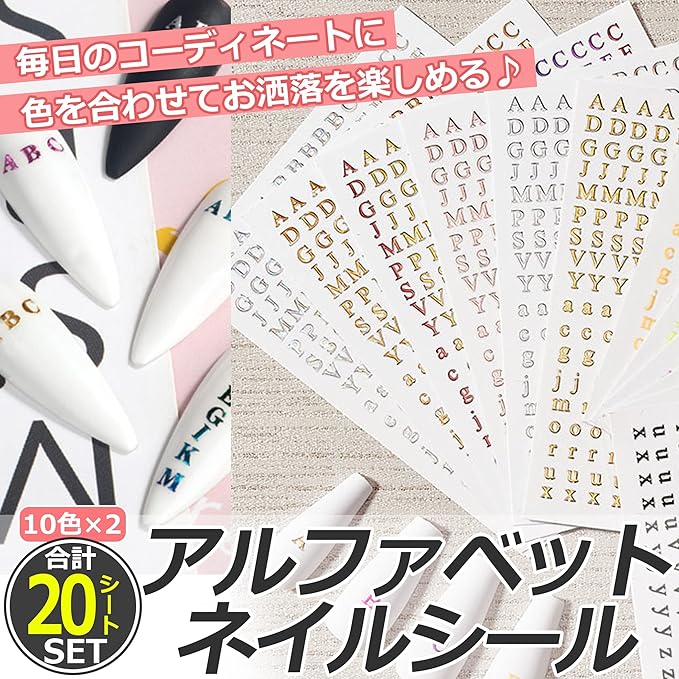 Felimoa アルファベット ネイルシール 英字 10色 合計20シートセット