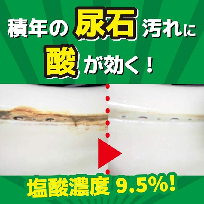 酸のチカラとマイナスイオンの相乗効果で頑固な黄ばみ尿石汚れを化学分解。