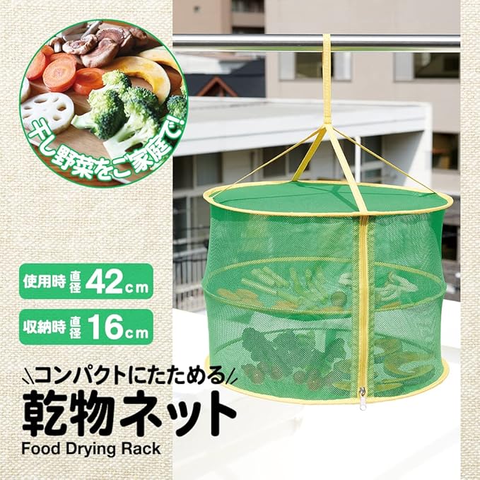 【2段式で一度にたくさん干せる】お家で簡単干し野菜作り!残った野菜やさかなの干物などたっぷり干すことができます。