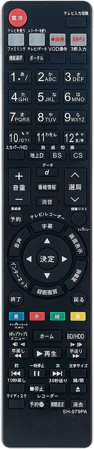 WINFLIKE 代替リモコン fit for シャープ GA979PA GB079PA GB185PA GB066PA GB131PA GB113PA(ダイヨウ) レコーダー用