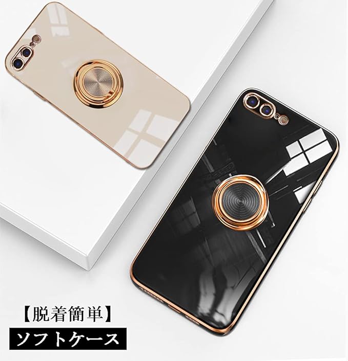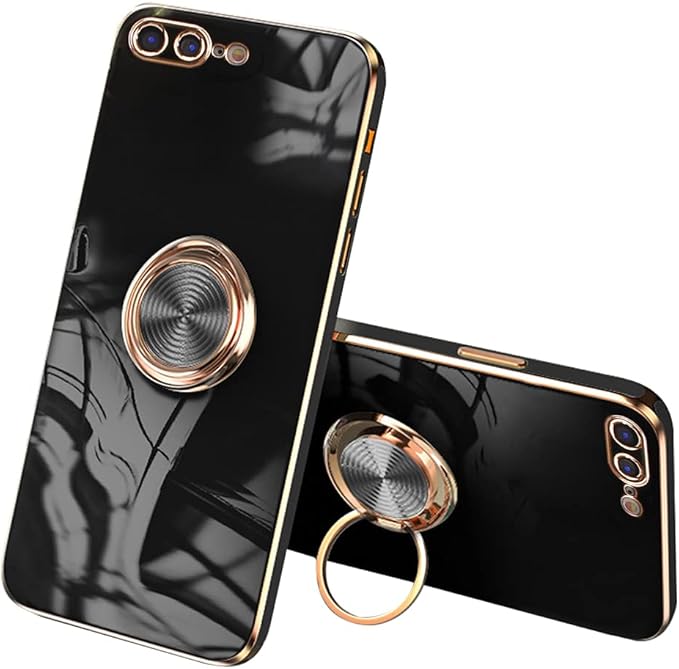JOOBOY iPhone8Plus ケース iPhone7 Plus ケース リング付き メッキ加工 レンズ保護 tpu ソフト ストラップホール付き 耐衝撃 スリム おしゃれ iPhone 8Plus アイフォン8 Plus ケース (iPhone7 Plus/iPhone8 Plus, ブラック)