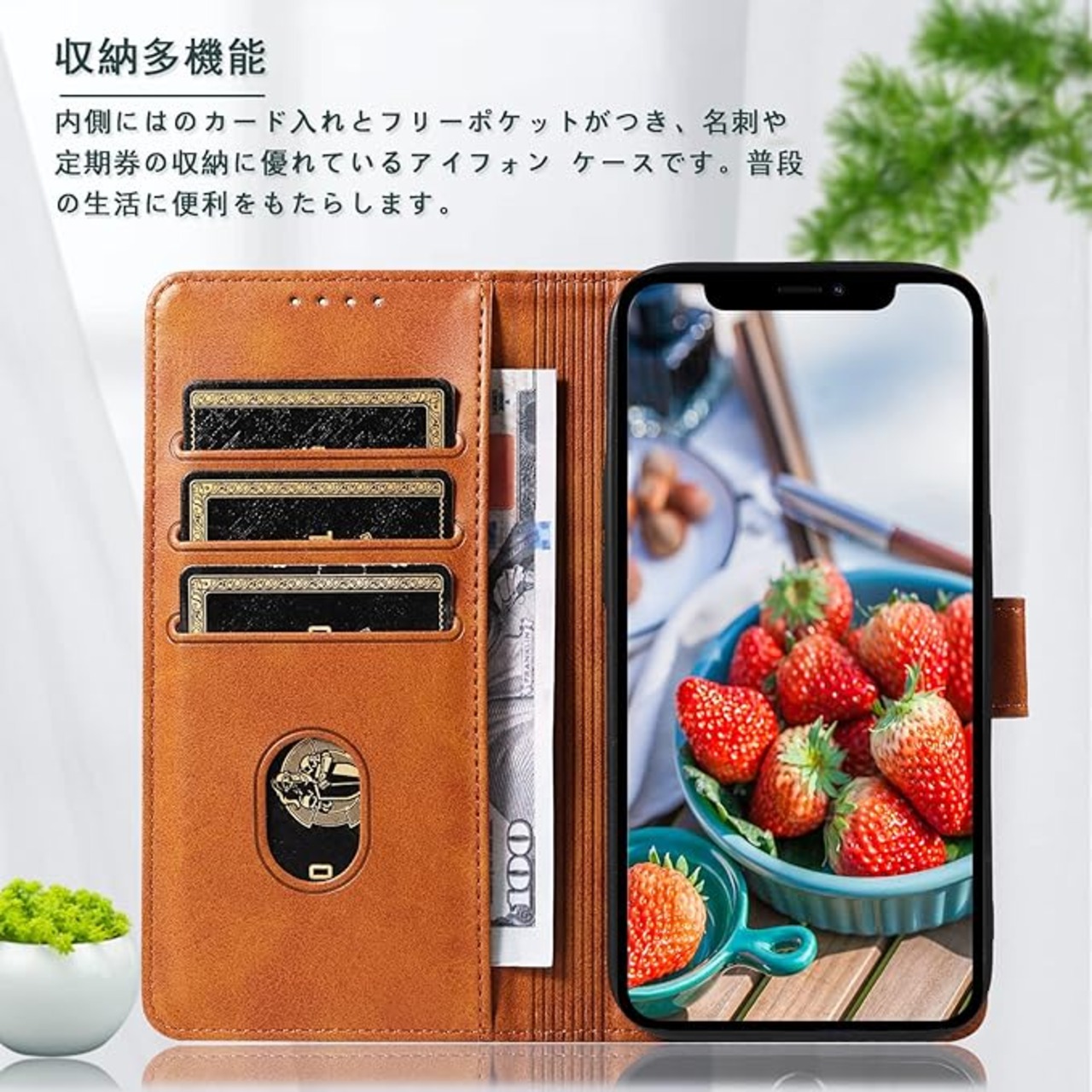 【カード収納】:アイフォン 手帳型ケースの内側にはカード入れのポケットが付くため、カード類や紙幣 、名刺、免許証などを入れることができ、日常の生活に便利です。なお、入れすぎるとふたが閉じづらくなりますので、ご注意くださいませ。