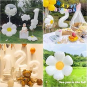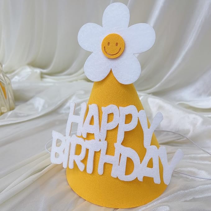 【セット内容】①フェルト布ガーランド 2 ②デイジーバルーン 4 ③数字バルーン 1 ④三角帽子 1 ⑤リボンひも (10m)