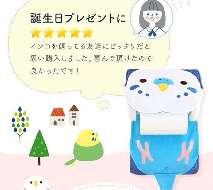 【kotori smile】トイレットペーパーホルダーカバー (【新】にぎころセキセイインコ(ブルー))