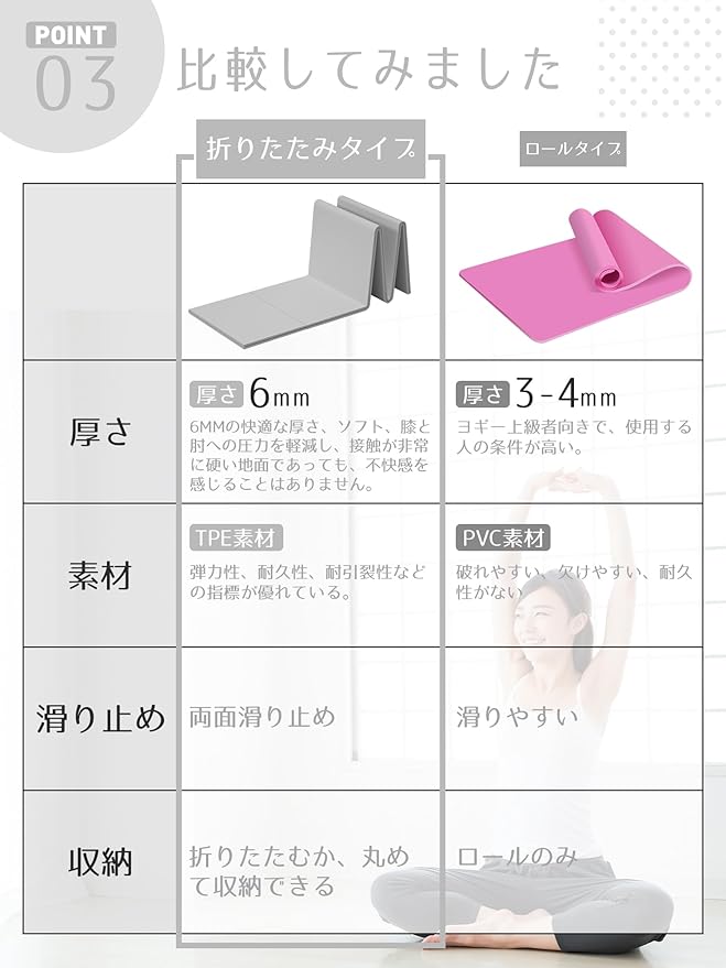 【折りたたみヨガマット tpe 6mm】6mm、より快適で滑りにくい。