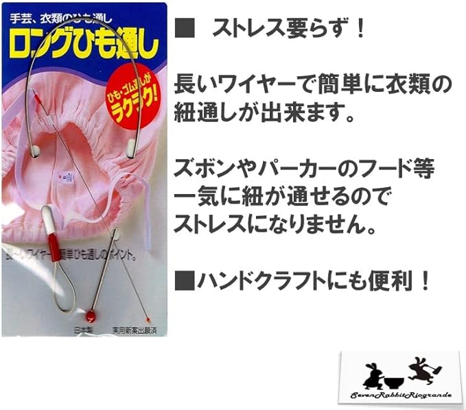 約29cmの長いワイヤーで簡単ひも通し ロング紐通し 2個セット 手芸・衣類の簡単ひも通し 7RabbitRiograndeオリジナルステッカー付 【商標登録番号 第6667215】