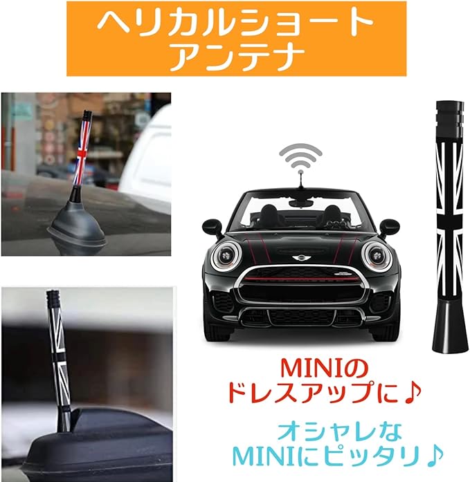 オシャレなMINIにぴったりのショートアンテナです!長さとデザインをお好みに合わせてお選びください。