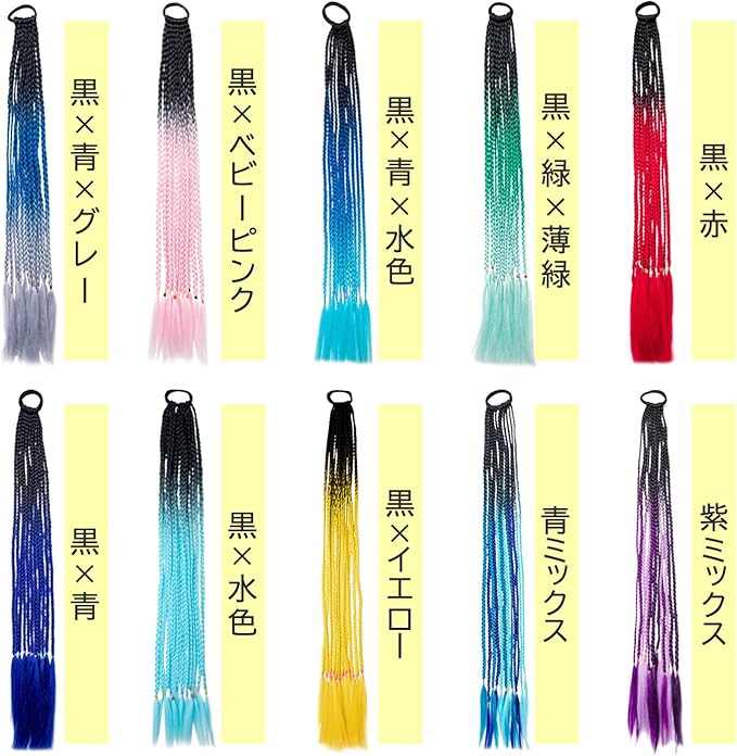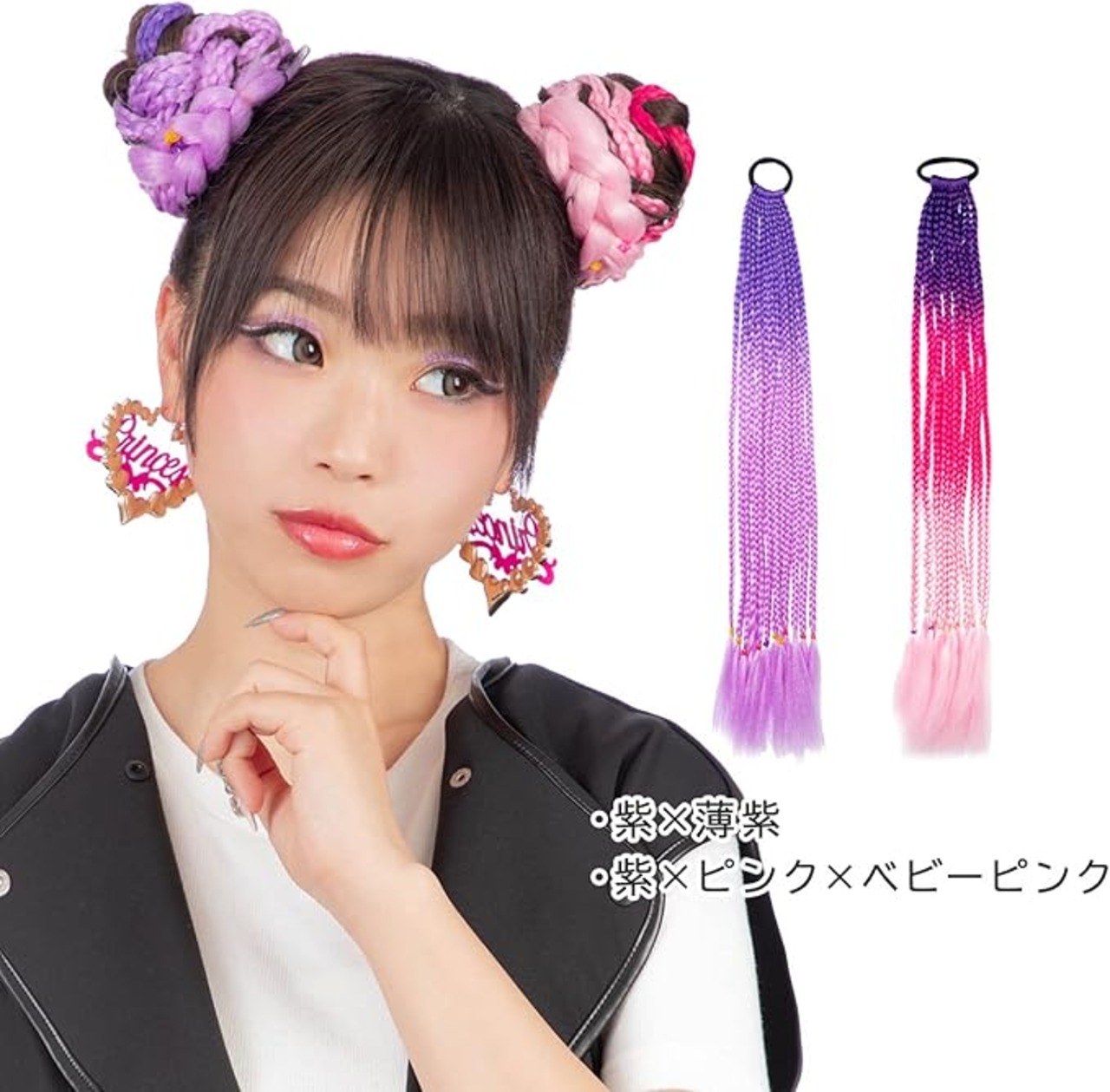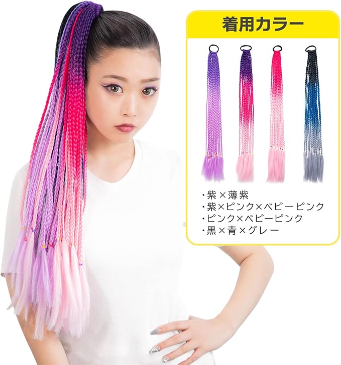 クラッセ ウィッグ専門店制作 ゴム付き 簡単 ブレイズエクステ キッズ 子どもから大人まで 動画あり グラデ 三つ編み カットで長さ調整可能 ダンス お祭り イベント ●● 紫 ピンク ベビー●●