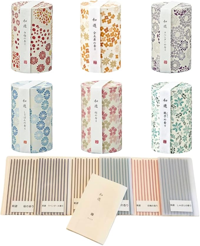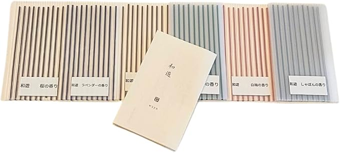 香りの種類:1白梅、2キンモクセイ、3ラベンダー、4クチナシ、5シャボン、6桜の香りの合計6種となります。 輸送の際に折れたりしないようにハードケースに10本ずつに入れた物となりますので、ご安心してご注文いただけます。