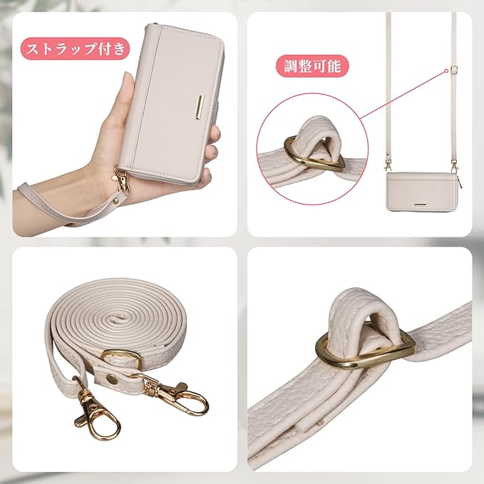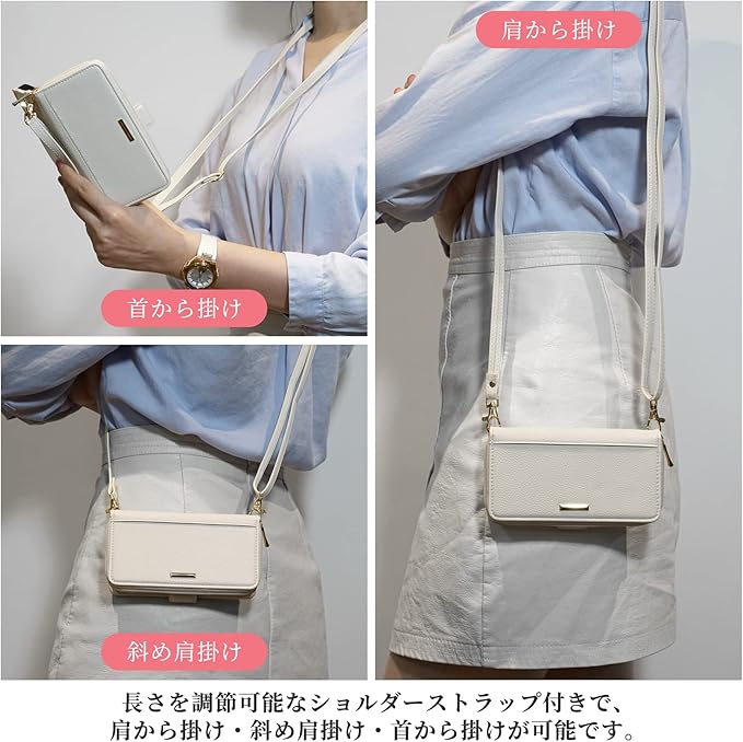 【お揃い長短ストラップ付き&長さを自由調節】ケースには長短2本セットのストラップが配置されており、お客様は好みや場面に応じて長さの異なるストラップを組み合わせることができます。長さを調節可能なショルダーストラップ付きで、肩から掛け・斜め肩掛け・首から掛けが可能で、ショルダーバッグのような感じがおしゃれで可愛いです。スマホのうっかり紛失を防ぐと同時に、両手を解放して楽しみです。短いハンドストラップは、上下2つのストラップ穴を自由に選んで装着でき、指先や手首を通した際に落下を防ぐことができ、片手操作もしやすい設計です。
