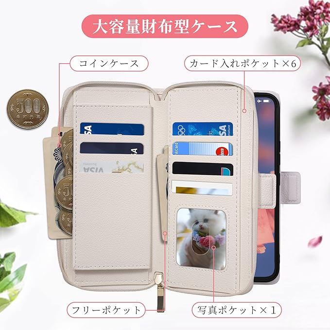 【抜群な収納力&カード保護設計】新しい大容量収納デザイン!Google Pixel 7aケースのファスナーポケット内側に実用性のカード入れポケット 6、写真ポケット 1、内側ポケット 2!銀行カード、交通カード、ICカードなどのカード類、名刺、定期券、小銭などを入れて収納でき、ケースと財布一体型の大収納のデザインで、ちょっとした買い物や散歩に出かけるときは、このスマホケースを持っていけば十分です。また、ファスナーポケットのデザインは、カード、お金の落下や紛失の心配がなく、簡単な操作でファスナーを開け閉めできる便利なGoogle Pixel 7aケース手帳型です。