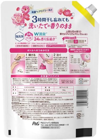 【2袋セット】 ボールド 洗濯洗剤 液体 華やかプレミアムブロッサム 詰め替え 大容量 780g + Kunutonnオリジナルロゴ入りhおしぼり付