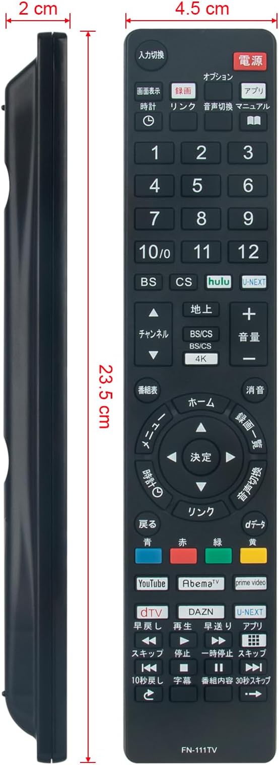 PerFascin 代用リモコン replace for FUNAI 有機ELテレビ リモコン 4K対応 FRM-110TV FRM-111TV FRM-112TV FRM-115TV FRM-109TV