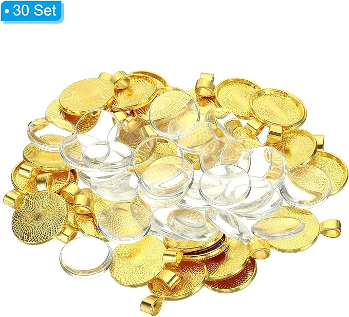 [PATIKIL] ペンダントトレイ 透明 ガラスカ半球付き 30セット 20mm ラウンド ベゼルトレイ ペンダント ドームタイル 写真 ペンダントジュエリー作成用 ブライトゴールド