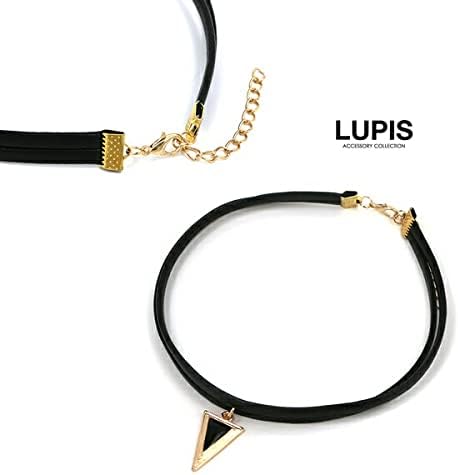 [LUPIS] チョーカー 黒 ブラック レザー レディース 2連 パンク カジュアル ネックレス ペンダント/ブラック