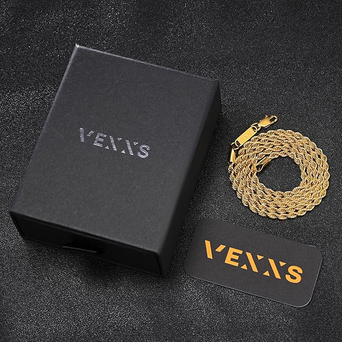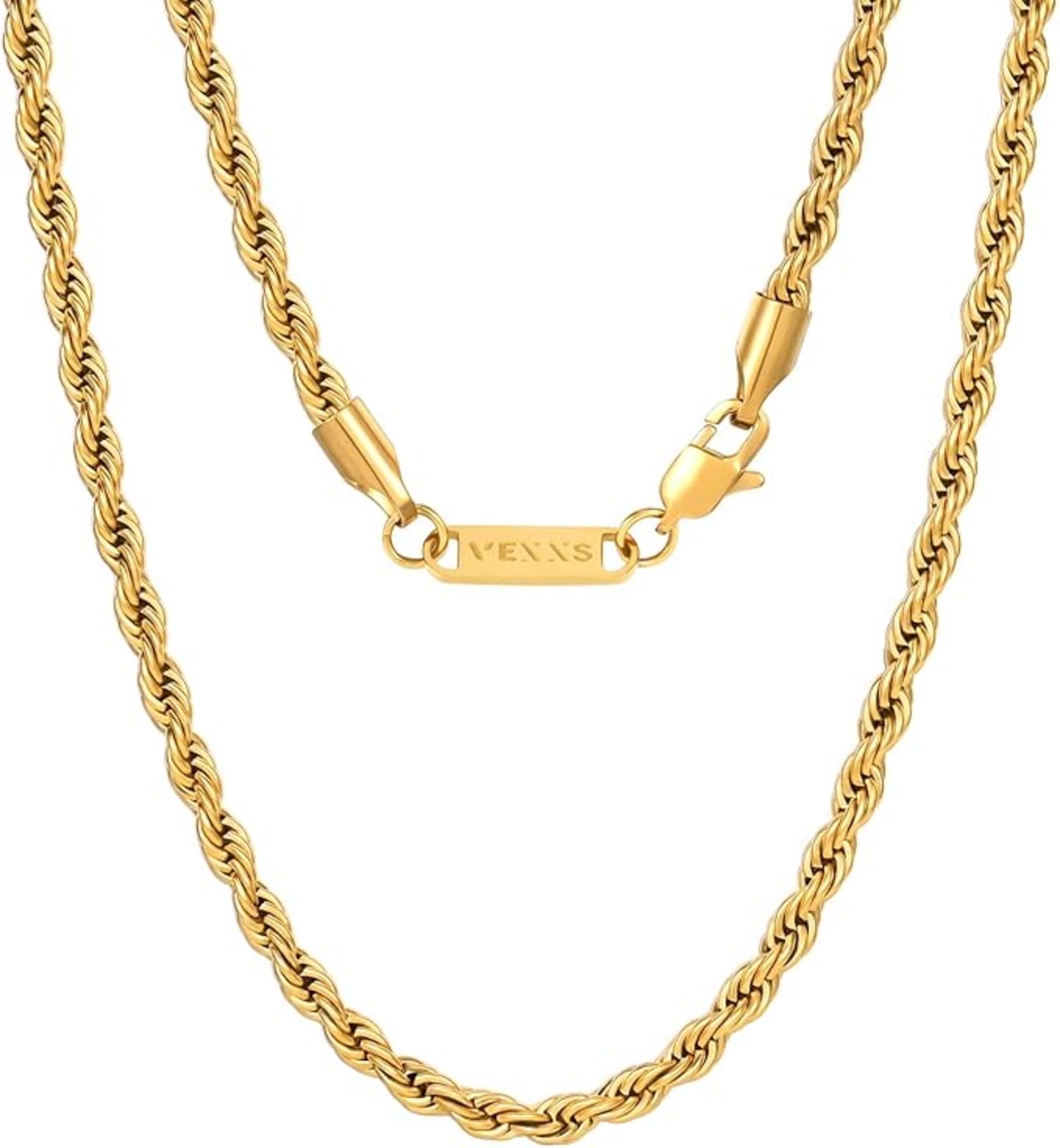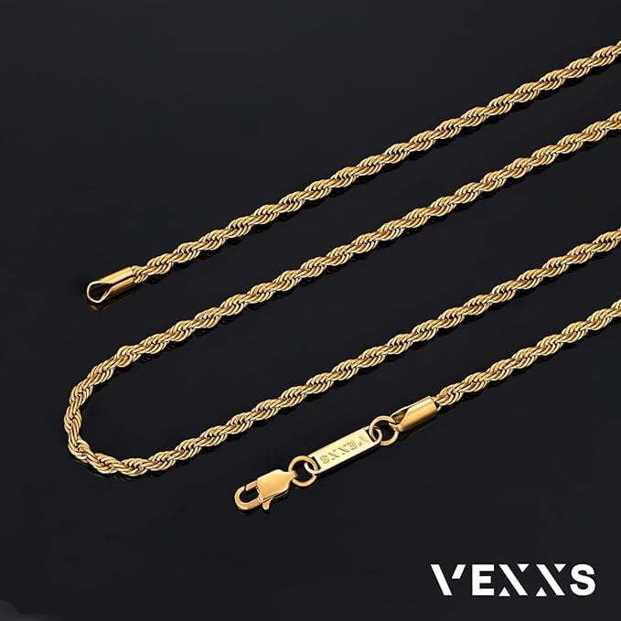 [VEXXS] ロープ チェーン ネックレス メンズ 幅3/4/5mm K18 ゴールドメッキ 男女兼用 アクセサリー 46~66cm
