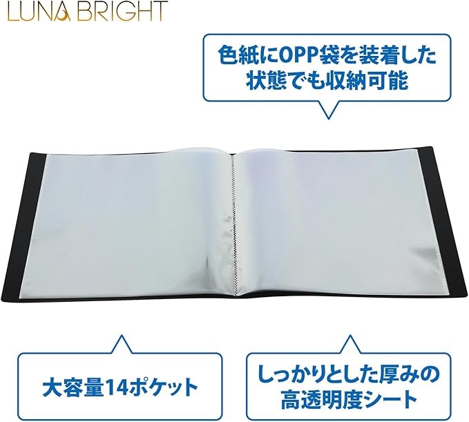 LUNABRIGHT 色紙ファイル ホルダー 14ポケット 大容量 ケース付 (1点)
