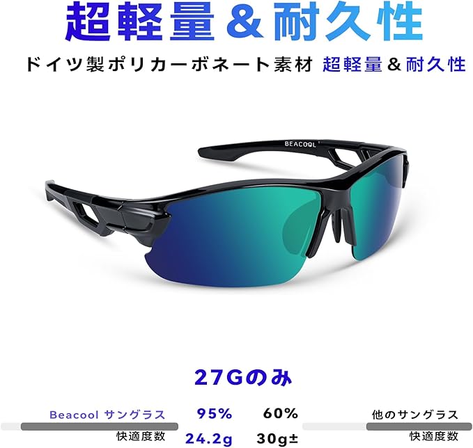 [BEACOOL] スポーツサングラス 偏光レンズ 野球 自転車 釣り ランニング 登山 ゴルフ ドライブ バイク テニス スキー メンズ レディース 超軽量 TR90 TAC UV400 紫外線防止 ユニセックス サングラス 安全 清晰